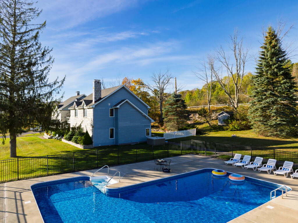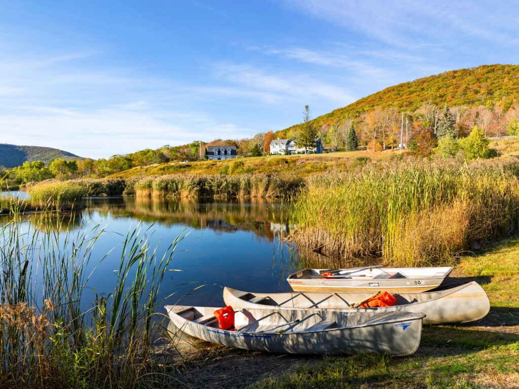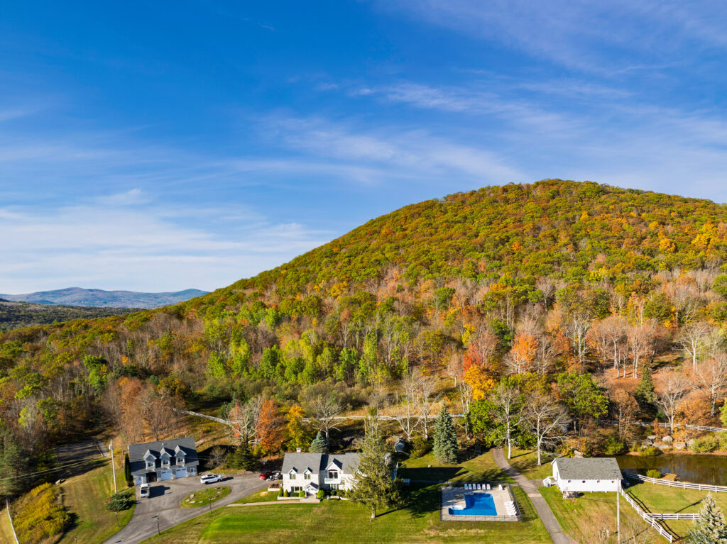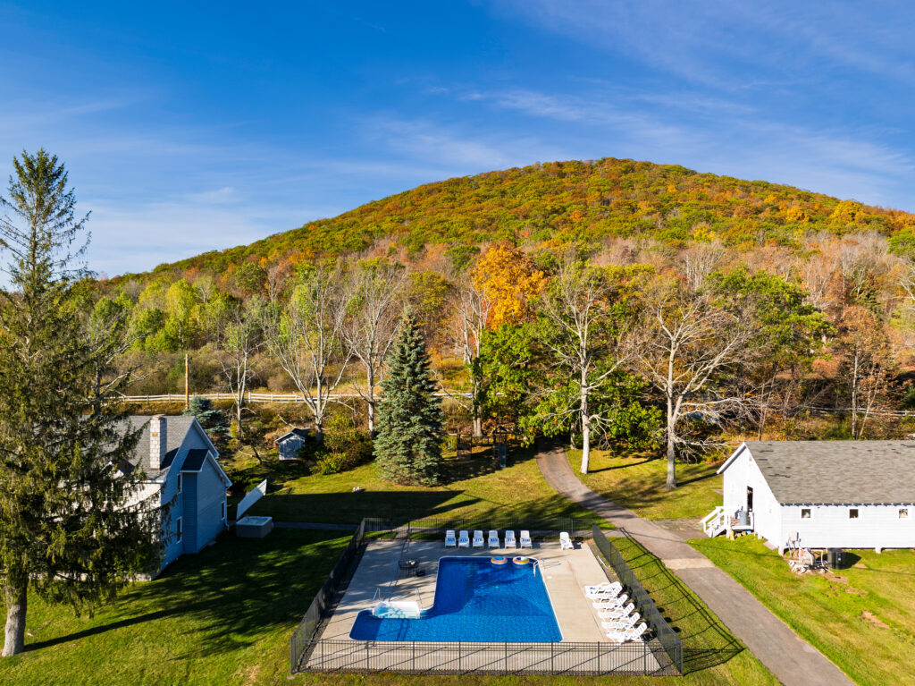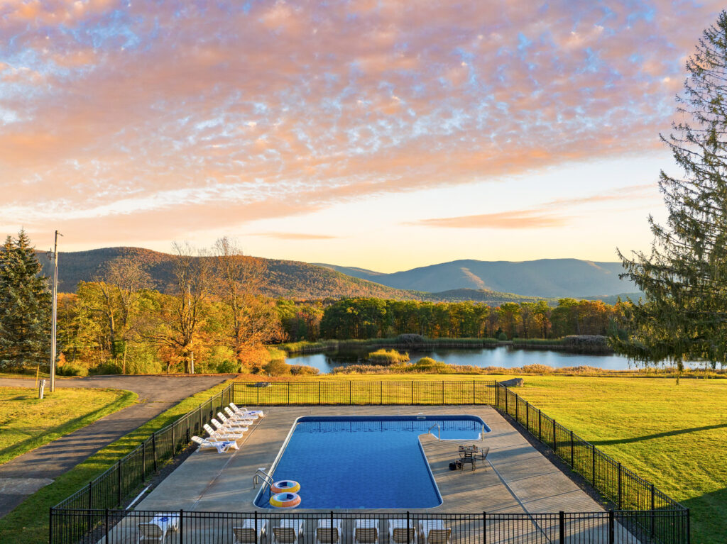 Situated among the rolling hills of the Catskills, Your Own Estate comprises a secluded, but sprawling, 30 acres of gracious landscape with expansive, panoramic mountain views. Your Own Estate also boasts a private, ¼ acre pond, and a private, tranquil, six-acre lake – perfect for canoeing, paddle boating, row boating, and fishing; or simply providing a picturesque backdrop for your group vacations, celebrations, and more.