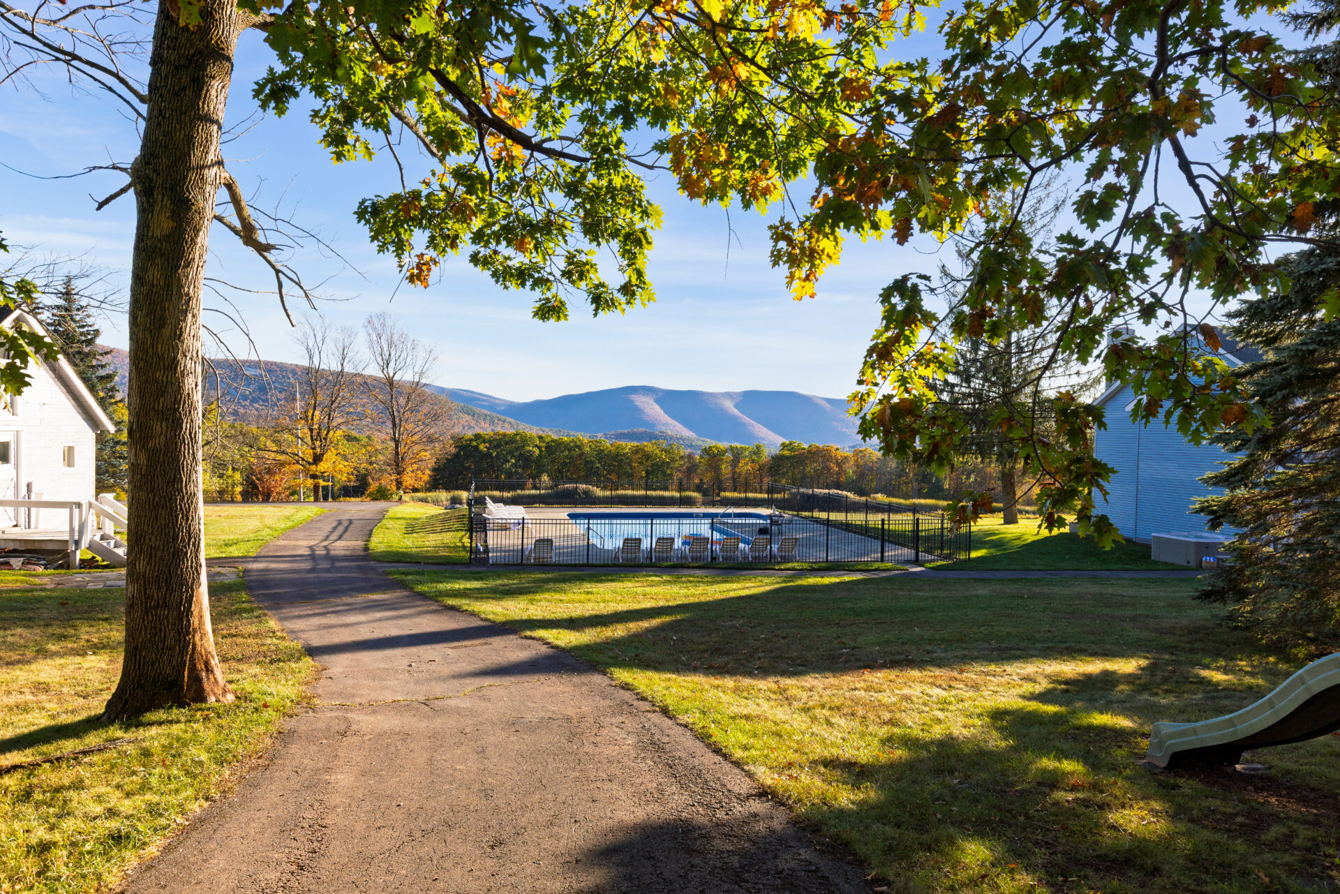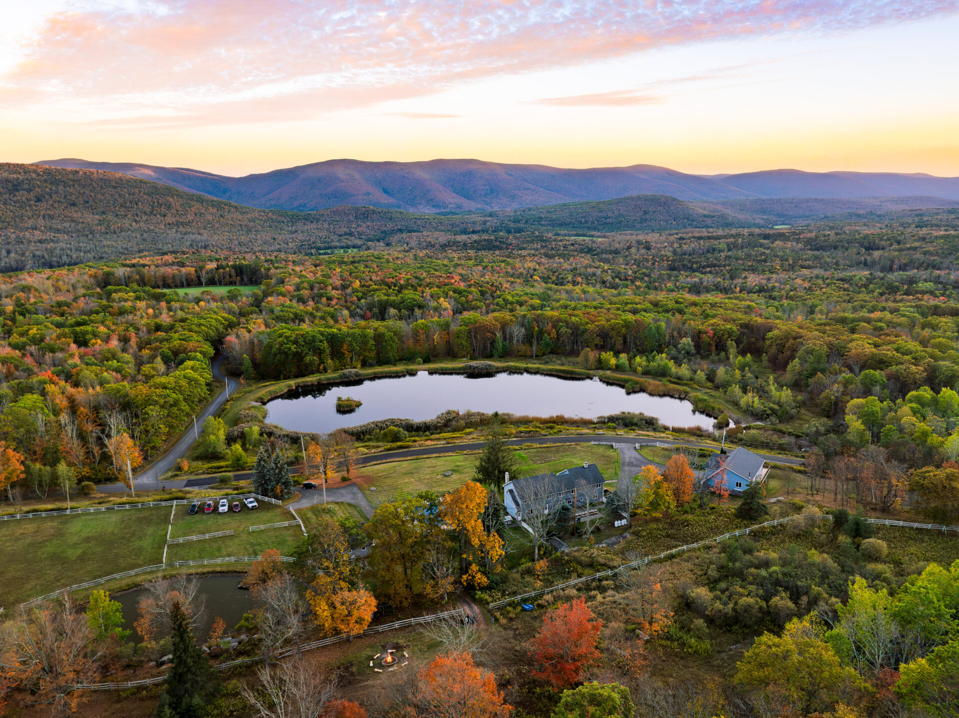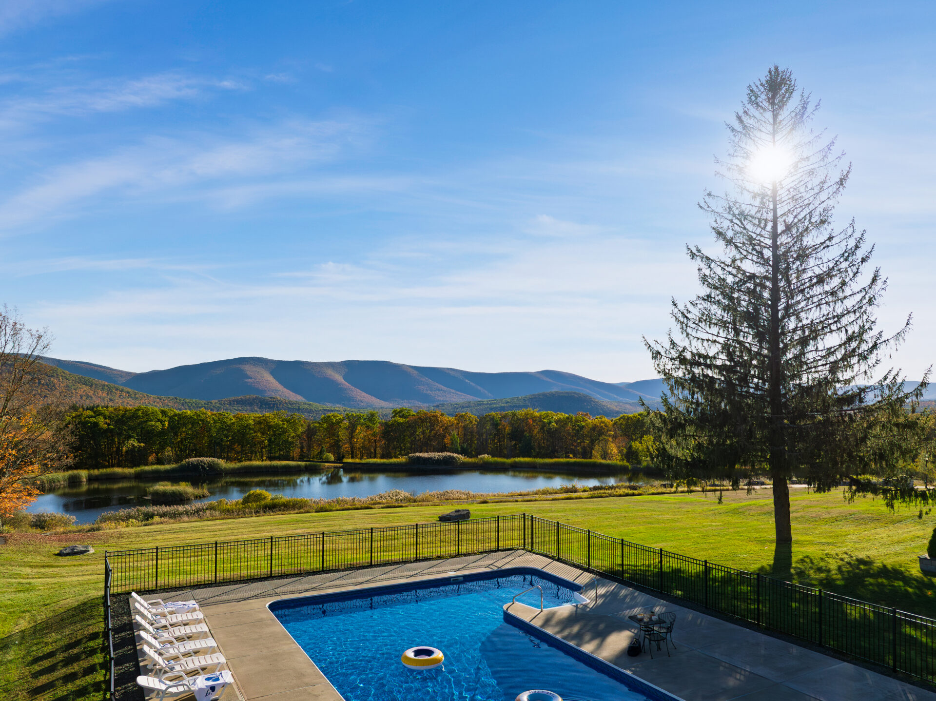 Situated among the rolling hills of the Catskills, Your Own Estate comprises a secluded, but sprawling, 30 acres of gracious landscape with expansive, panoramic mountain views. Your Own Estate also boasts a private, ¼ acre pond, and a private, tranquil, six-acre lake – perfect for canoeing, paddle boating, row boating, and fishing; or simply providing a picturesque backdrop for your group vacations, celebrations, and more.