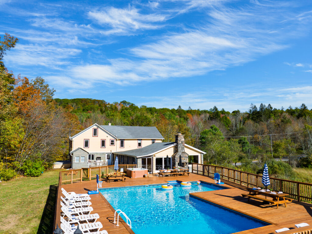 Located only three miles from the famous Hunter Mountain, Your Own Inn comprises a large, but cozy, 7,500-square foot residence, set on five acres of pristine, manicured land. Originally constructed in the late 1800s as a boarding house where horse and buggies would pull up, this 14 bedroom, 7.5 bathroom property has since been renovated to provide an incredible vacation experience for families, friends, retreats, and more.